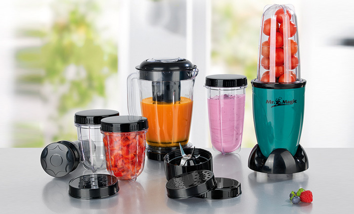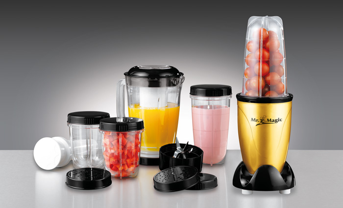 Avec un peu de magie, en quelques secondes, vos fruits et légumes s’apprêtent à être coupés, mixés, broyés, écrasés, fouettés ou réduits en purée ! C’est tout simplement magique, avec le robot multifonction Mr. Magic de 4 ou 18 pièces.