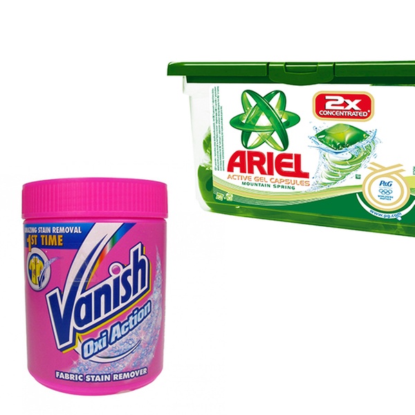 Ces Vanish poudre et détergents Ariel ont été conçus pour aider à l’élimination des taches et donner de l’éclat au linge