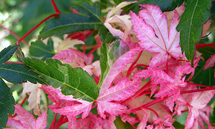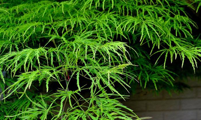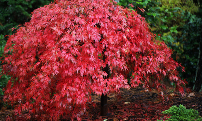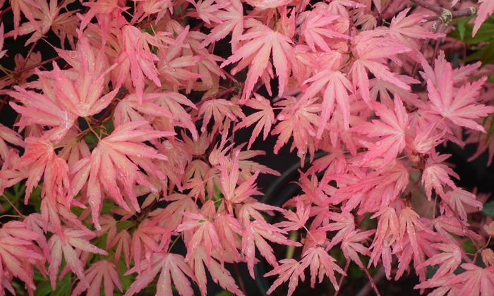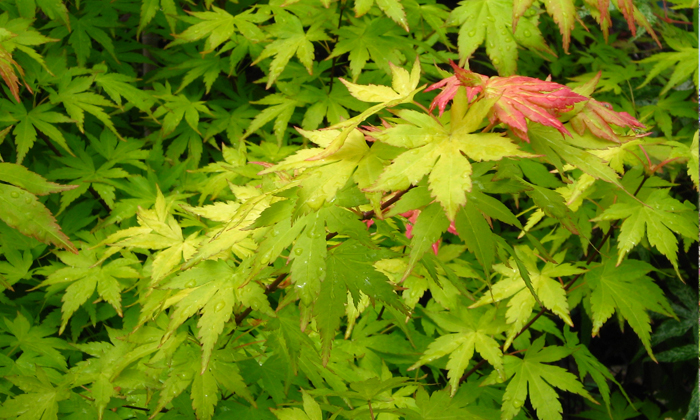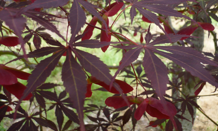 L’érable japonais dispose de feuilles colorées, dont la teinte varie au fil des saisons, du vert clair au rouge foncé en passant par le brun : un festival de couleurs tout au long de l’année !