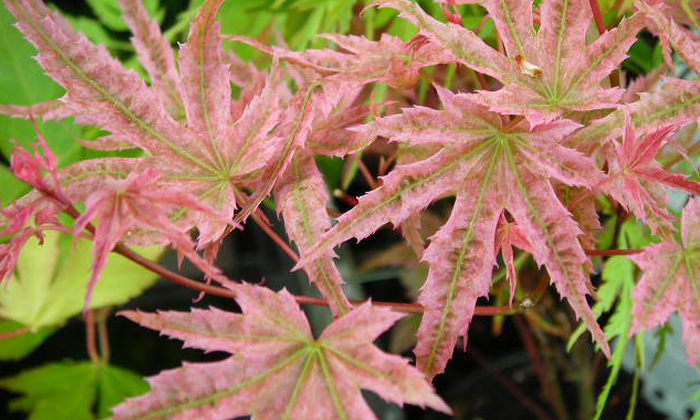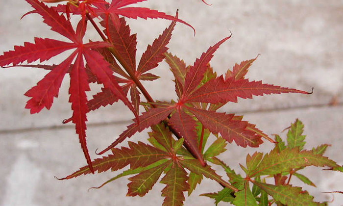 Benimaiko * Au printemps, les feuilles ridées se parent d’un rouge flamme, puis d’un rouge rosé * Au milieu de l’été, ells deviennent bleues à reflets verts, avec des rainures rouges * Croissance lente * Taille maximale de 2 mètres * À planter dans un pot sur le patio