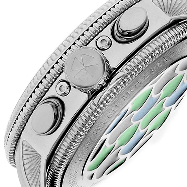 Accentuée par un boîtier en acier inoxydable poli, cette montre résistante à l’eau a un mouvement automatique et est disponible en 3 modèles