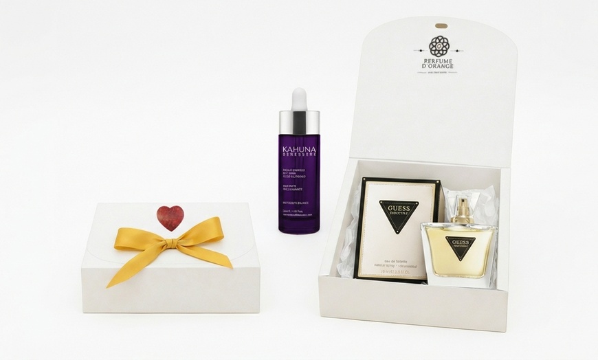 Offrez le cadeau parfait avec ce coffret exclusif combinant l'élégance iconique de l'eau de toilette Guess Seductive et le soin expert du sérum Kahuna Wellness.