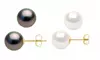 Fabriqué en France avec des perles de cristal et de l'or fin 24 carats, cet ensemble en édition limitée comprend des boucles d'oreilles clou en perles blanches et grises de 8 mm, présentées dans une boîte noire exclusive avec un lien en satin rouge pour offrir en cadeau.
