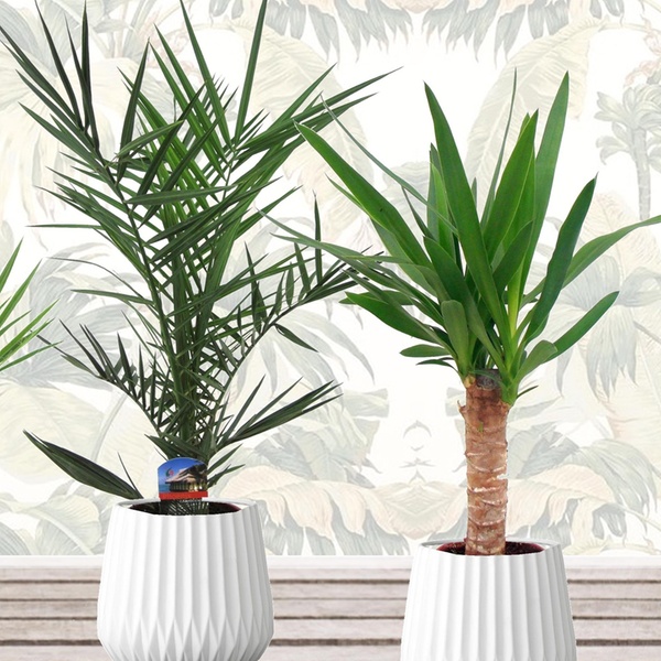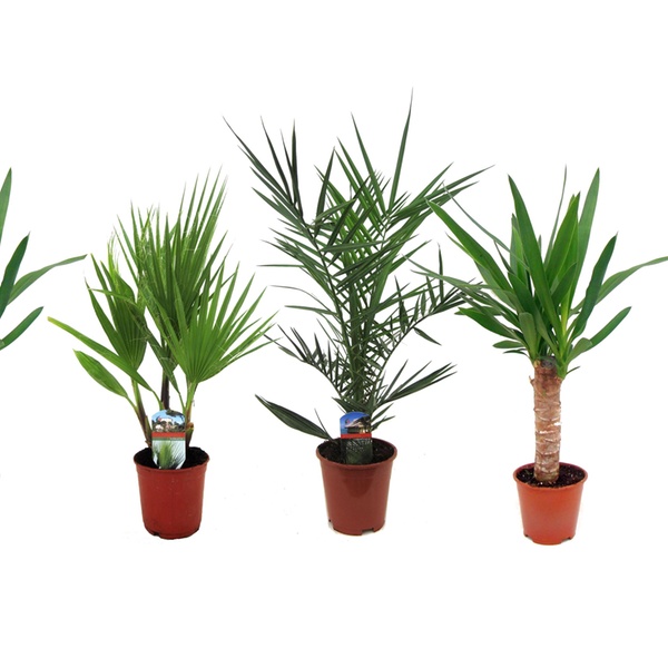 Cet ensemble de palmiers pour la maison comprend Washingtonia Robusta, Phoenix Canariensis et Yucca Elephantipes