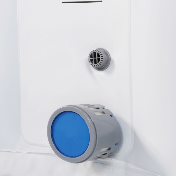 - Son moteur integré assure la gonflage et la chauffe de l’eau jusqu’à 40 degrés grâce à sa résistance