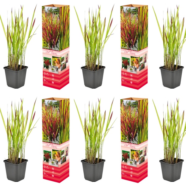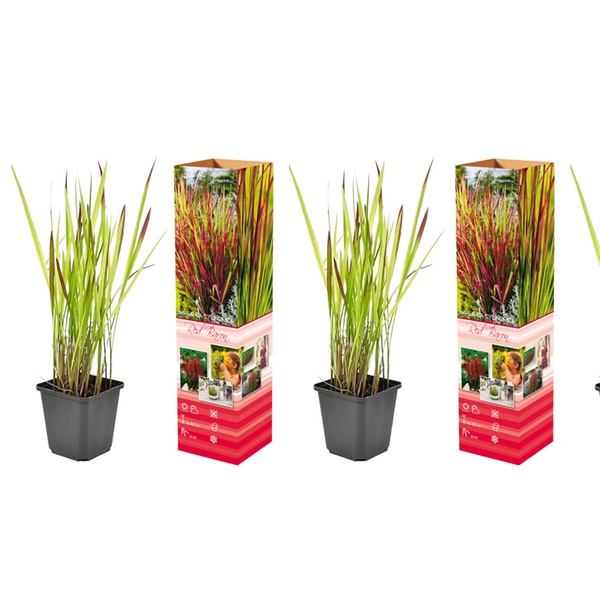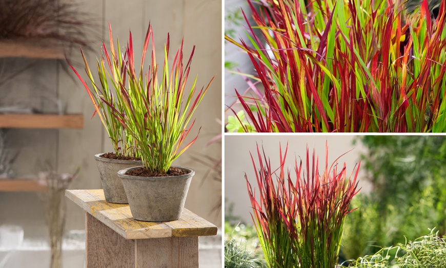 Ajoutez une texture élégante et des accents de couleur rouge intense à votre jardin avec ce set de graminées décoratives japonaises.