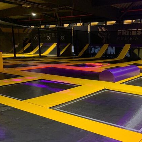 Ervaar 3.000 m² aan springplezier en jump 60 minuten lang in verschillende area’s, bijvoorbeeld de Sports zone met trefbal.