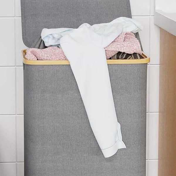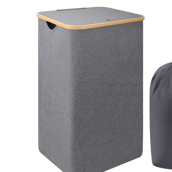 Vous cherchez un panier à linge à la fois pratique et stylé ? Ce modèle en tissu Oxford 600D est non seulement solide et imperméable, mais il offre aussi une grande capacité et est doté de poignées en bambou.