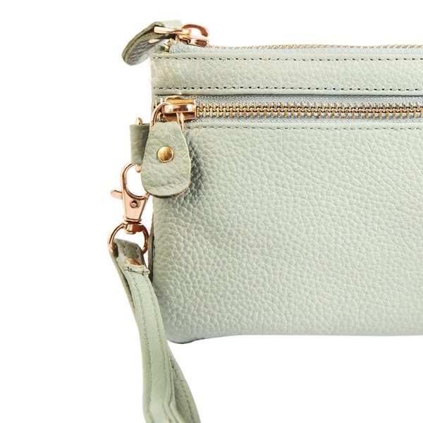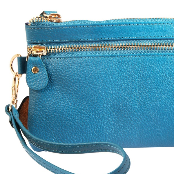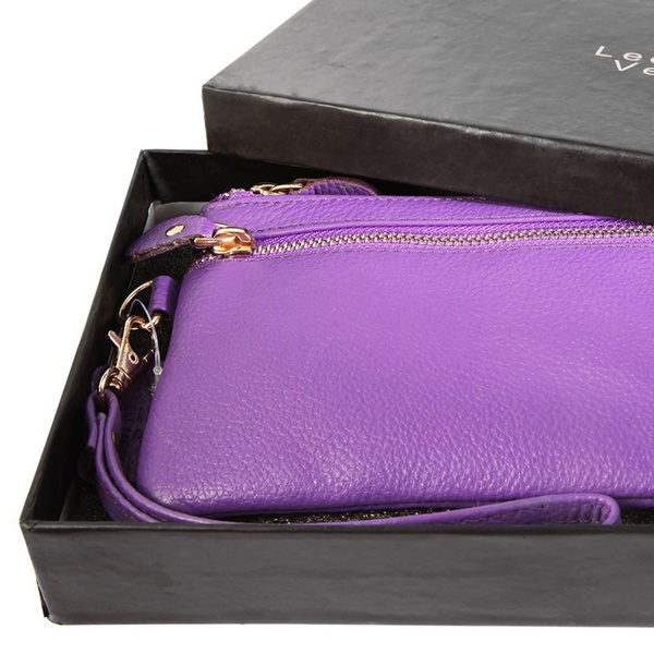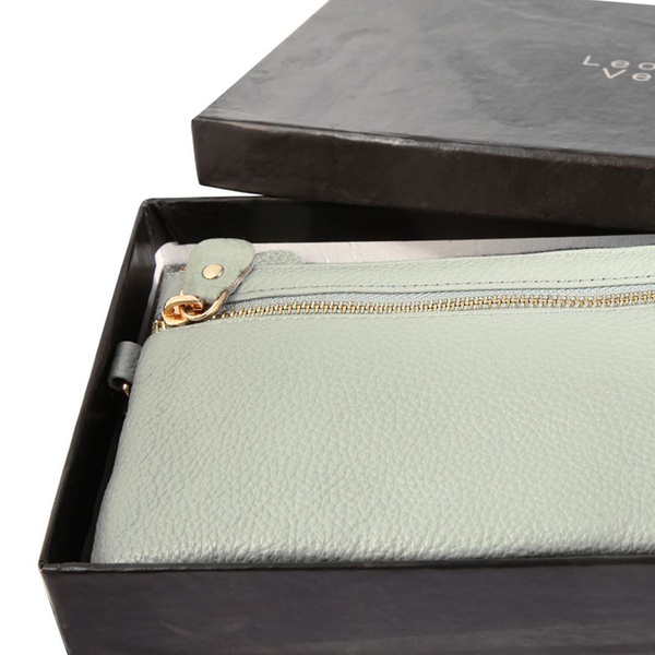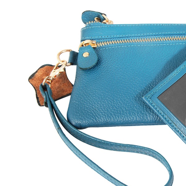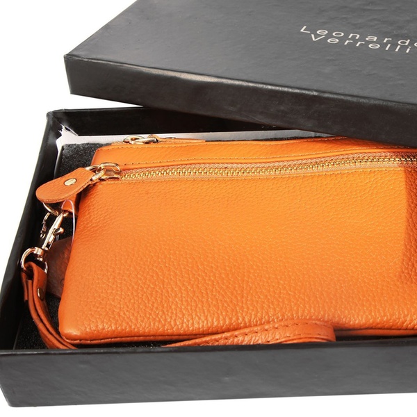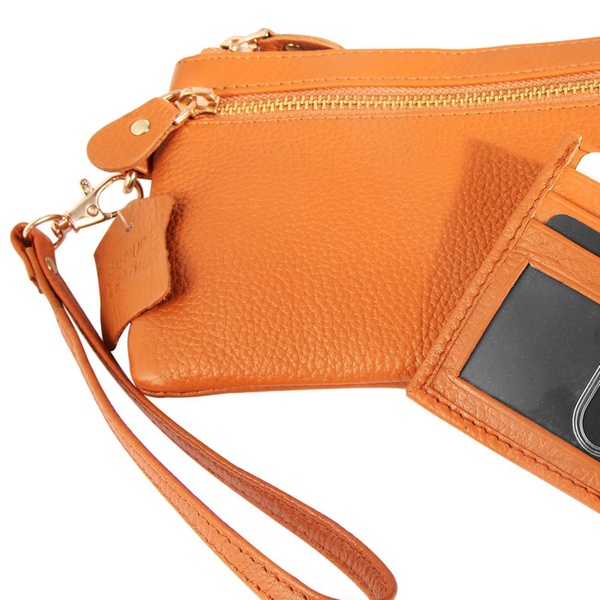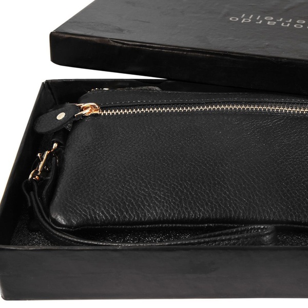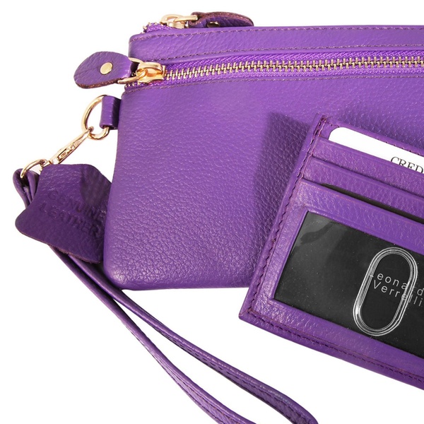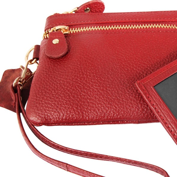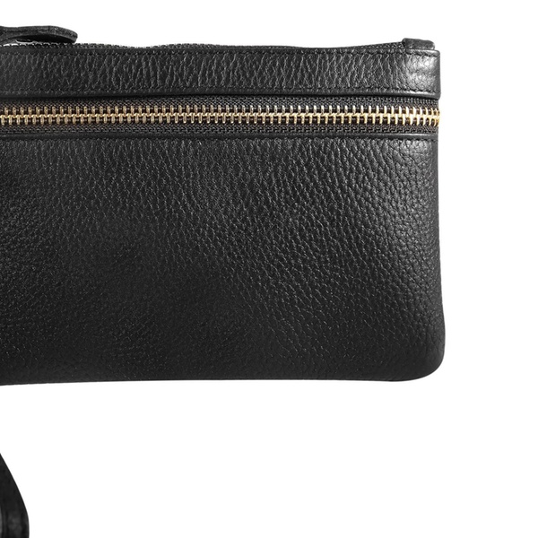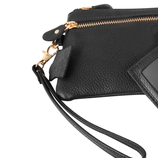 - Contenu : une pochette fine à double fermeture éclair et un porte-cartes assorti, avec une dragonne amovible (17 cm).