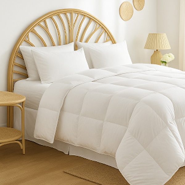 Confort doux et frais avec cette couette légère en plumes de canard, hypoallergénique, respirante et lavable en machine.