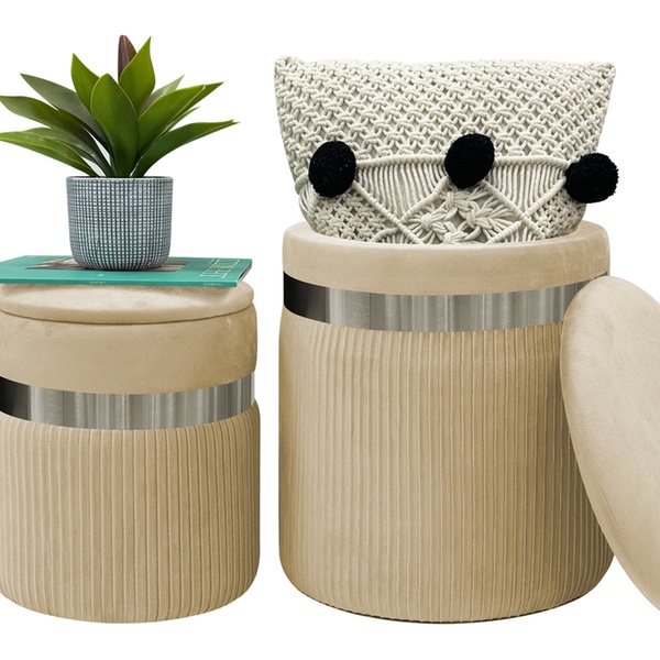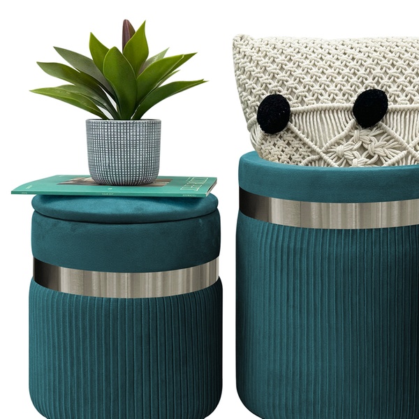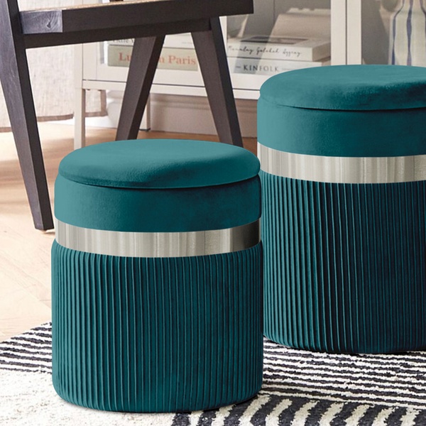 Poufs en velours élégants qui combinent luxe, confort et espace de rangement pratique sans effort