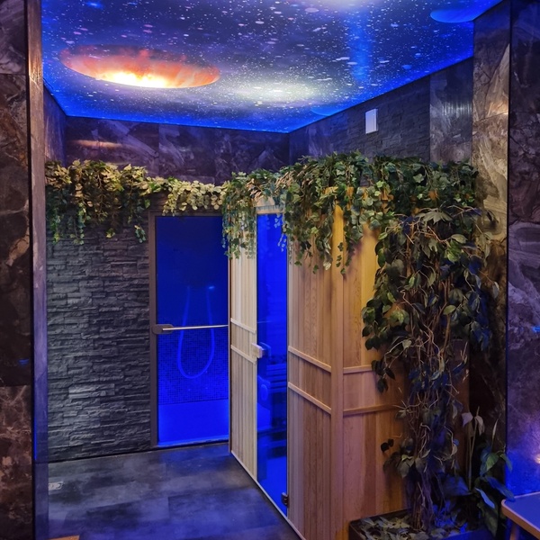 Détendez-vous dans votre propre paradis thermal privé pour deux avec hammam, sauna et bain à remous.