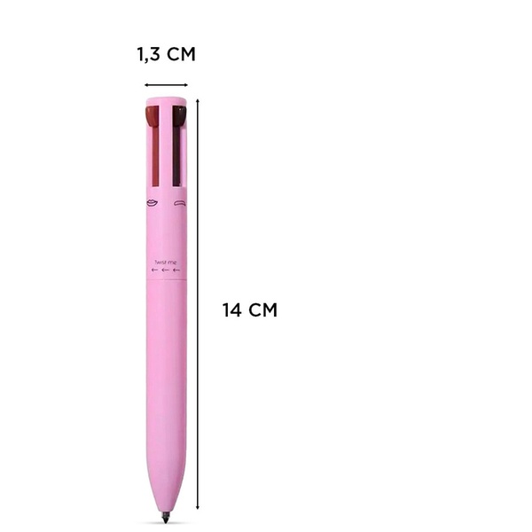 Ce stylo multifonctionnel pour le maquillage offre quatre embouts pratiques en un : lèvres, eye-liner, enlumineur et sourcils.