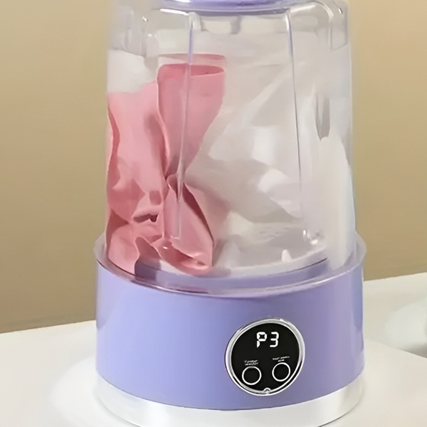 Met twee wasprogramma's en een ingebouwde centrifuge is deze mini-wasmachine perfect voor ondergoed en sokken