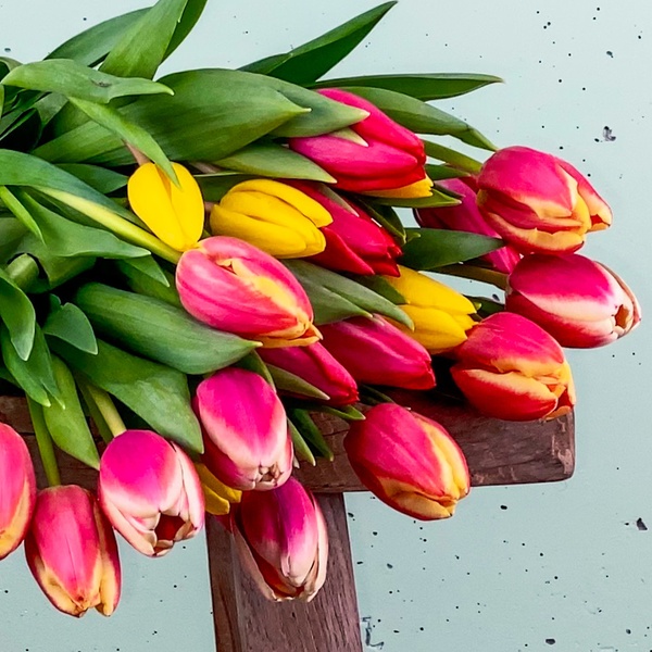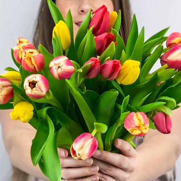 Comprenant 25 tulipes de coloris différents, ce bouquet peut servir d’une idée de cadeau de printemps à une femme proche