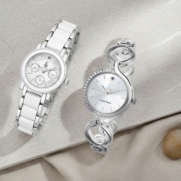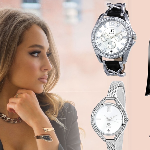 Découvrez cette collection de montres élégantes, chacune dotée d'un diamant et de cristaux scintillants (selon le modèle), alliant un mouvement Quartz haute fiabilité à un design soigné, et livrée avec sa pochette cadeau en organza.
