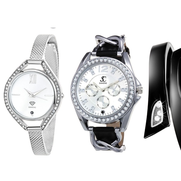 - Montre ornée d'un diamant et de 3 cristaux scintillants