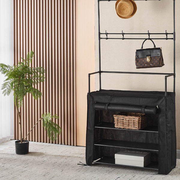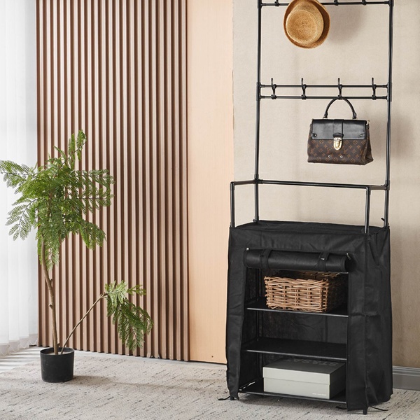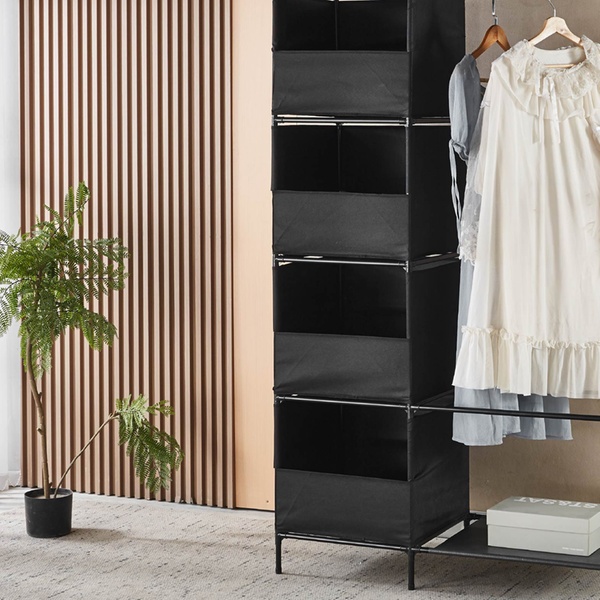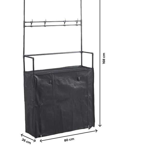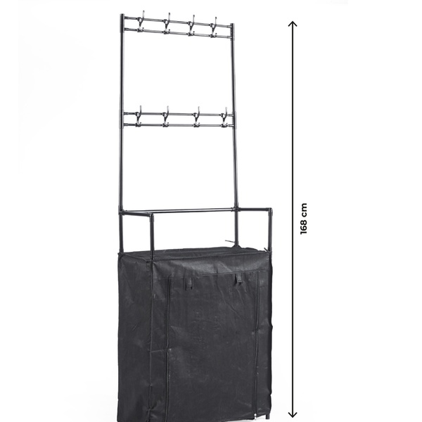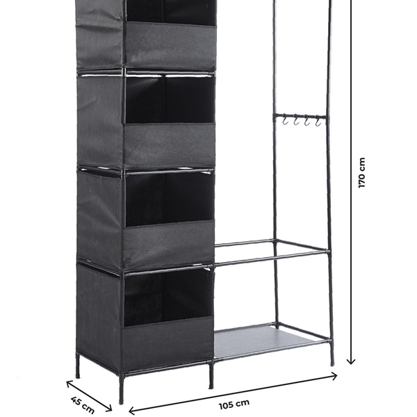 organisation: combine tringle à vêtements et compartiments de rangement latéraux