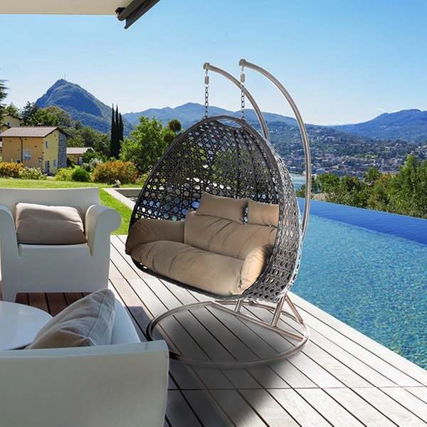 Durable, robuste et élégante, cette chaise suspendue twin en rotin convient à toutes les ambiances