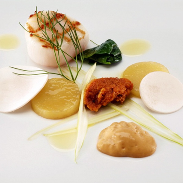 “C’est un trou de verdure où chante une rivière”. Ces premiers vers du poème de Rimbaud pourraient tout à fait seoir au décor dans lequel s’inscrit le Restaurant l’Eau Vive. L’établissement voit le jour en 1990, sous la houlette du chef Pierre Résimont. Vingt ans plus tard, le voici récompensé de deux étoiles au Michelin. Un petit moulin du 17ème siècle auréolé de nature, une terrasse avec verrière prolongeant la bâtisse, un jardin bordé par le Burnot (rivière)… Voilà pour le cadre champêtre, qui se déguste avec les yeux. Vient ensuite l’assiette, à l’image du décor : harmonieuse, évolutive, travaillée juste ce qu’il faut pour ne pas en faire trop et laisser le produit s’exprimer. “Le juste équilibre”, voici la quête dans laquelle s’est lancé ce talentueux enthousiaste : les textures, l’acidulé et la richesse des mets sont savamment dosés.