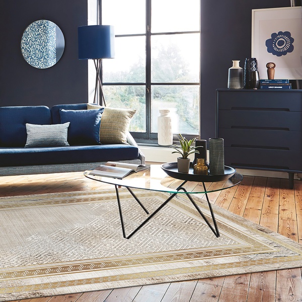 - Tapis de salon avec impression argent ou or