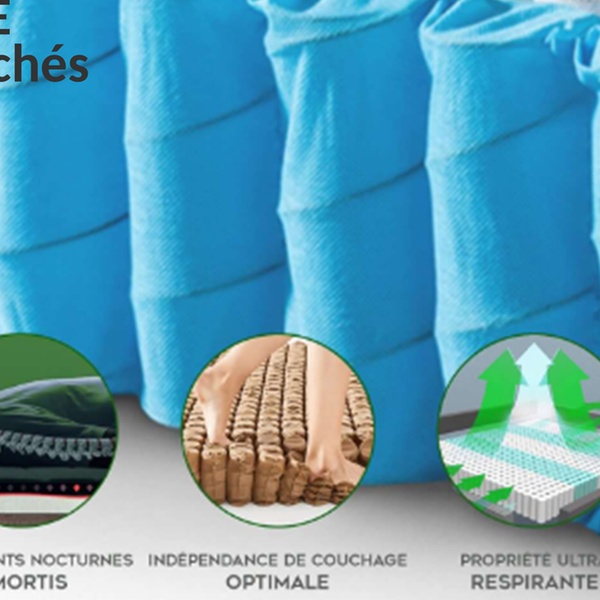 - Chaque ressort ensaché est enveloppé individuellement, ce qui permet un soutien indépendant pour chaque zone du corps. Cela minimise les perturbations causées par les mouvements nocturnes.