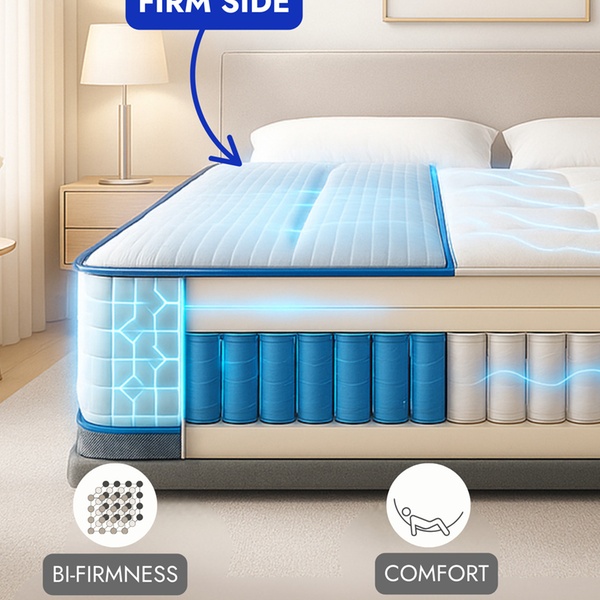 - Idéal pour les couples ayant des préférences de fermeté différentes, ou pour ceux qui souhaitent adapter leur confort en fonction de leurs besoins ou de leur condition physique.