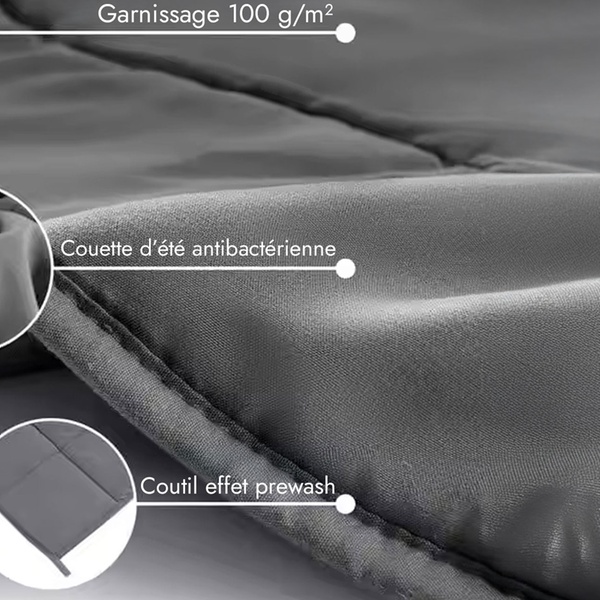 - Confort optimal durant la saison estivale : Garnissage léger et thermorégulateur pour une chaleur idéale en toutes saisons.
