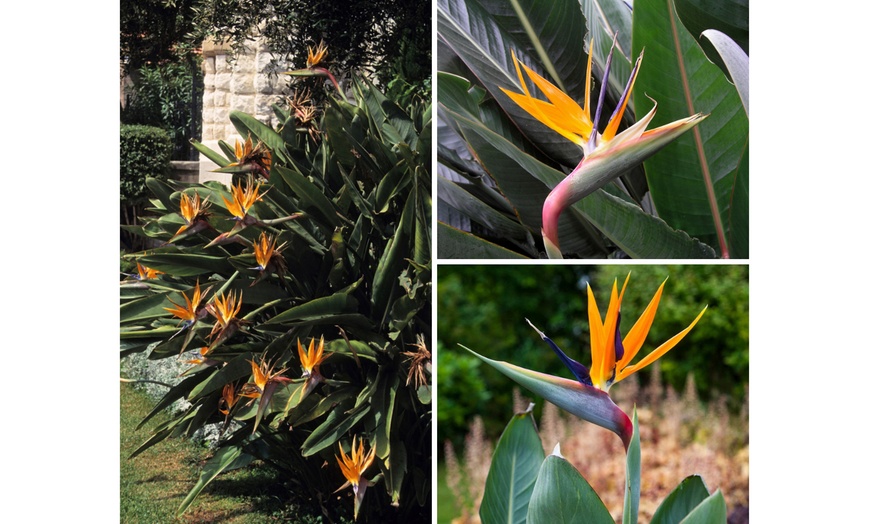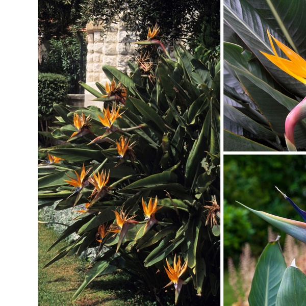 Sur ces plantes s'épanouit une fleur exotique aux pétales étonnants et colorés, en forme de tête d'oiseau de paradis.