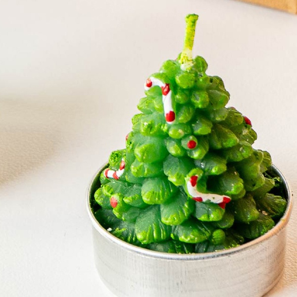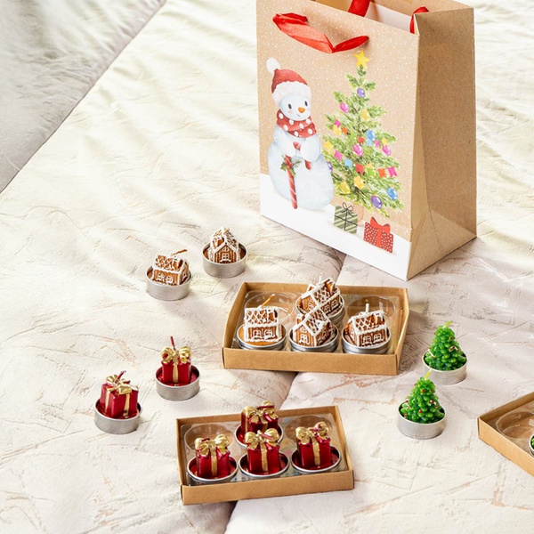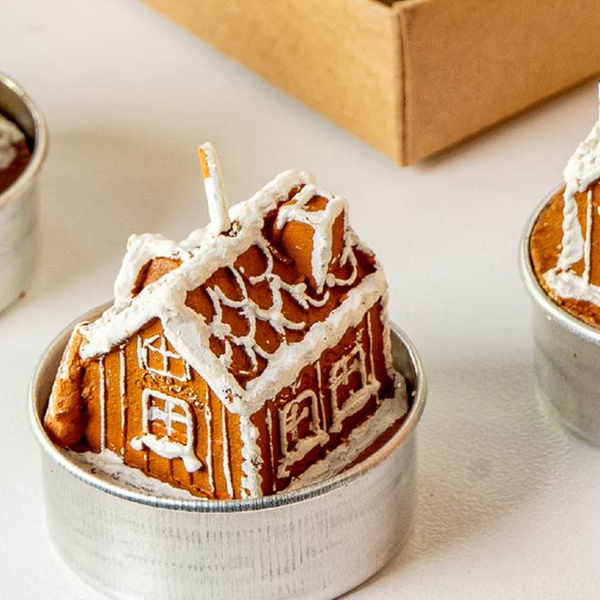 Illuminez les fêtes avec ces bougies 3D festives en forme de sapin et maison en pain d'épices, prêtes à offrir et à allumer.