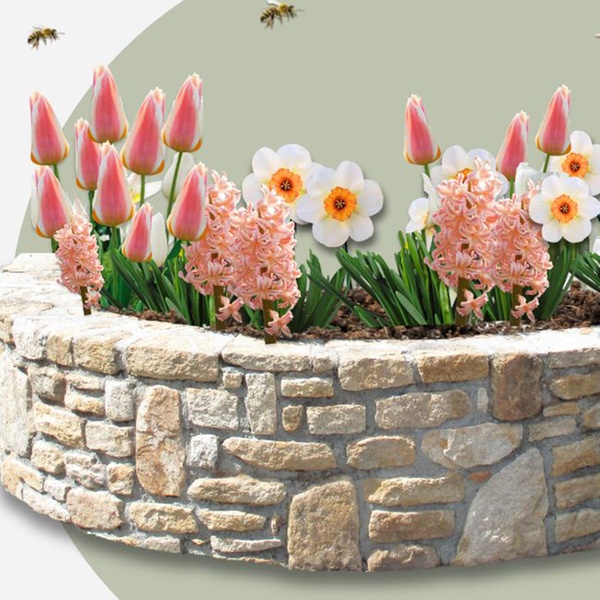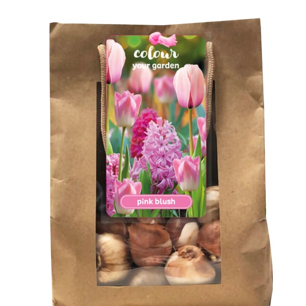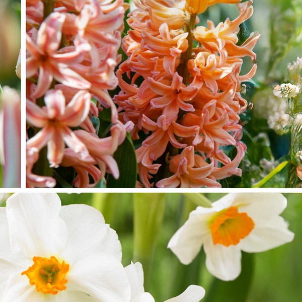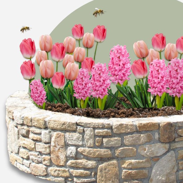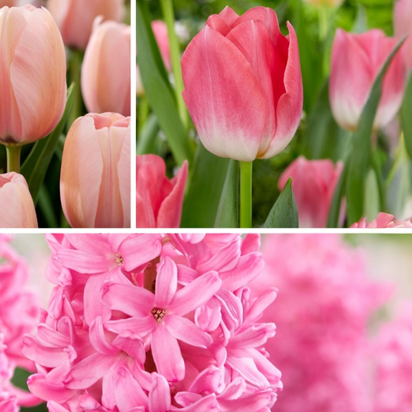 - Variétés incluses : tulipe Salmon Impression, tulipe Dynasty, jacinthe Pink Pearl