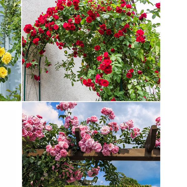 - Ensemble de roses grimpantes (Paul's Scarlet, Golden Rain, et/ou Parade)