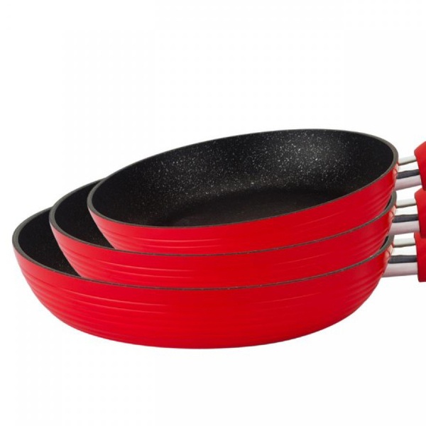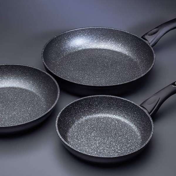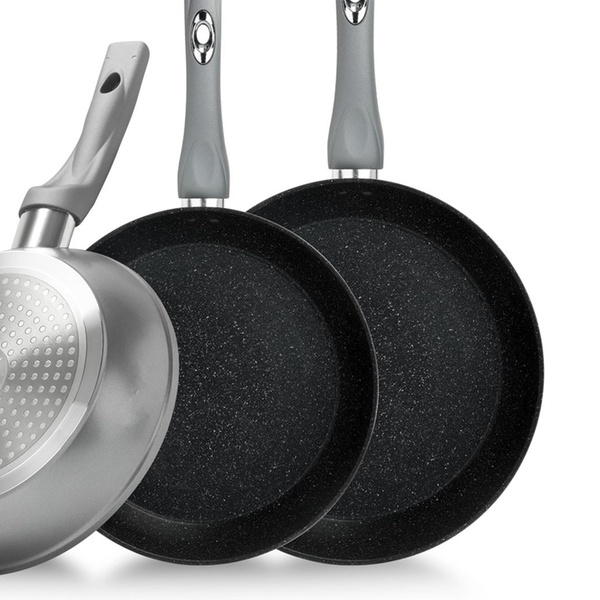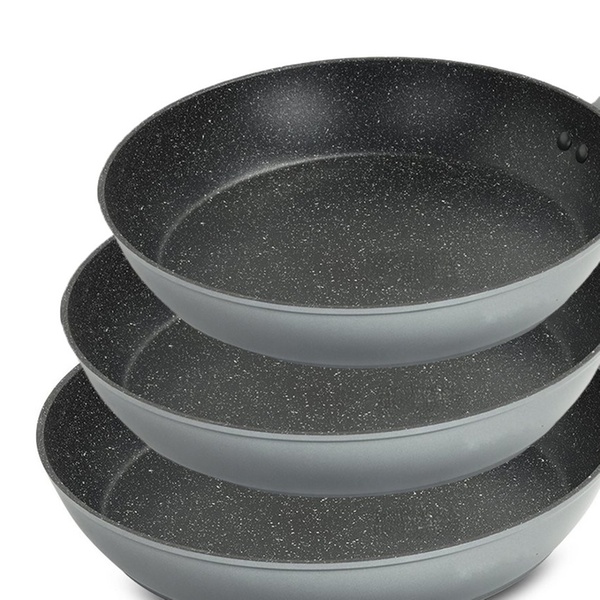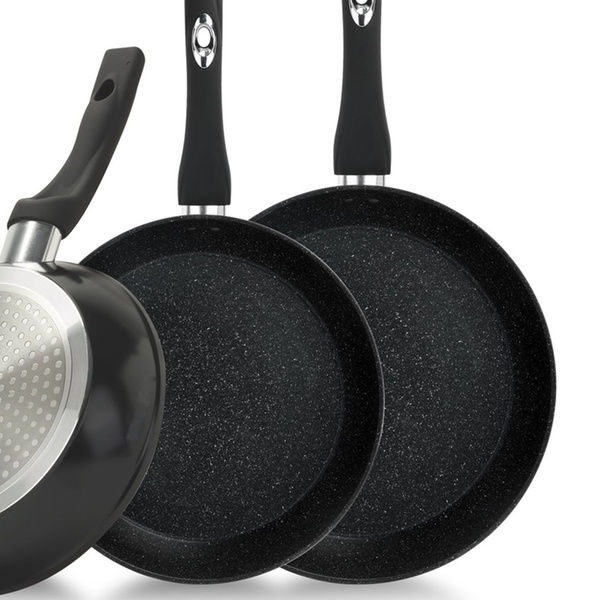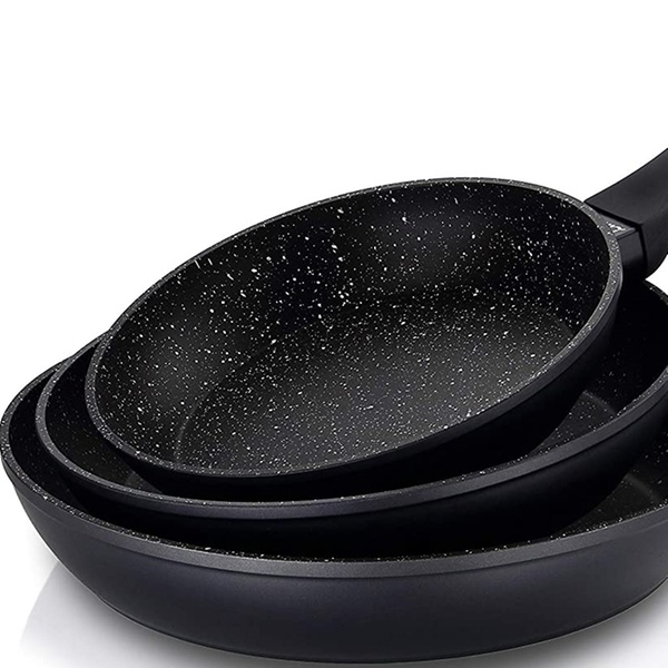 Ce set de 3 poêles dispose d'un revêtement en marbre antiadhésif pour une cuisson uniforme et un nettoyage simplifié
