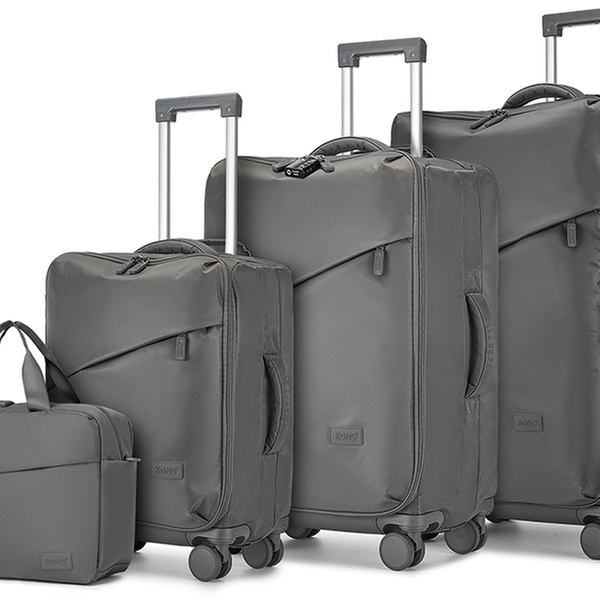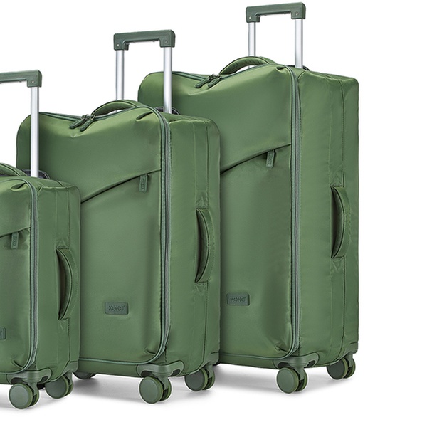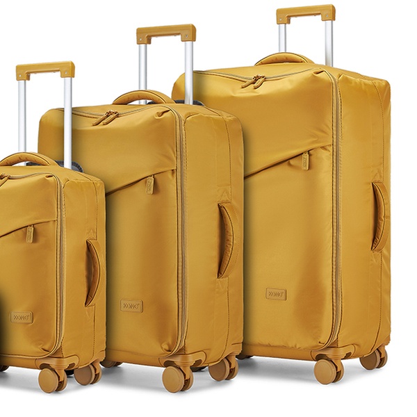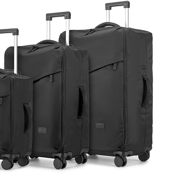 Le set de bagages "Soft Shell" à roulettes est un compagnon de voyage élégant et fonctionnel, qui assure une protection efficace contre l'eau et les chocs.