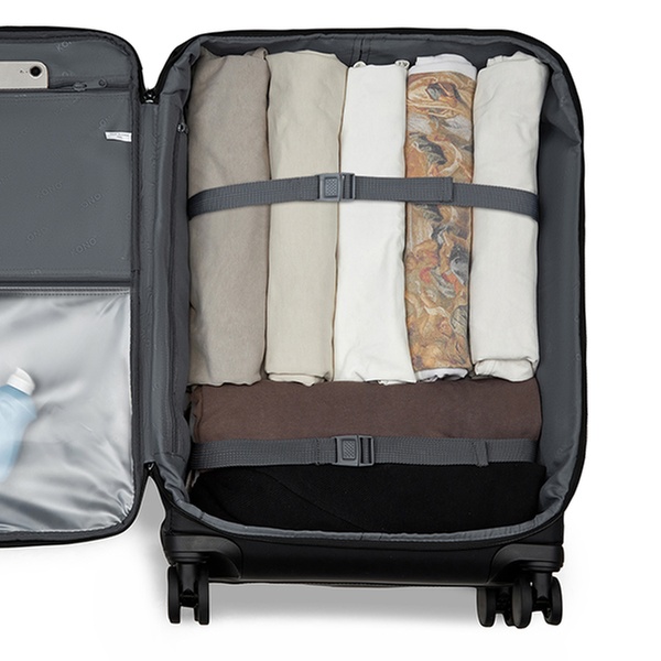 - Sangle arrière pour attacher au chariot de valise, facilitant les voyages.