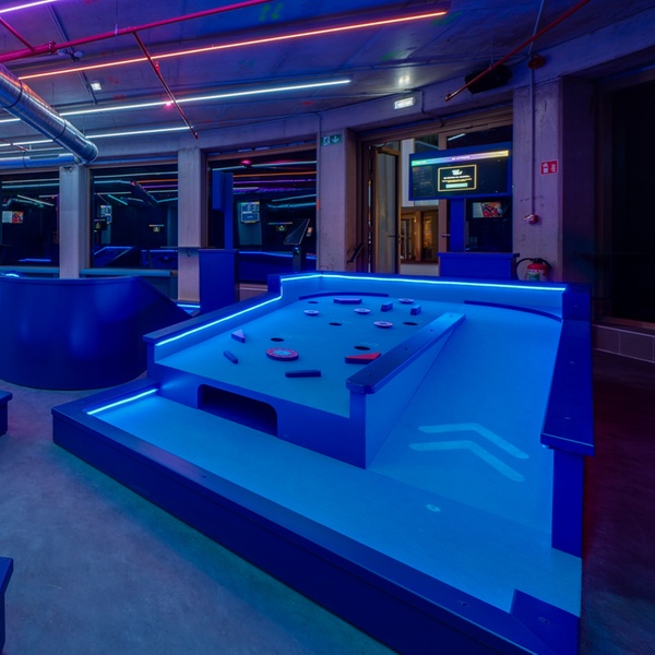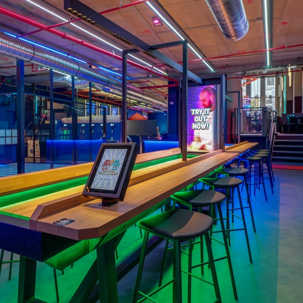 - Profitez non seulement des jeux et de la compétition, mais aussi des en-cas et boissons dans le resto-bar “fast-good”, avec des planches à partager, des pizzas, des snacks ainsi qu’un service en libre-service pour la bière et les cocktails.