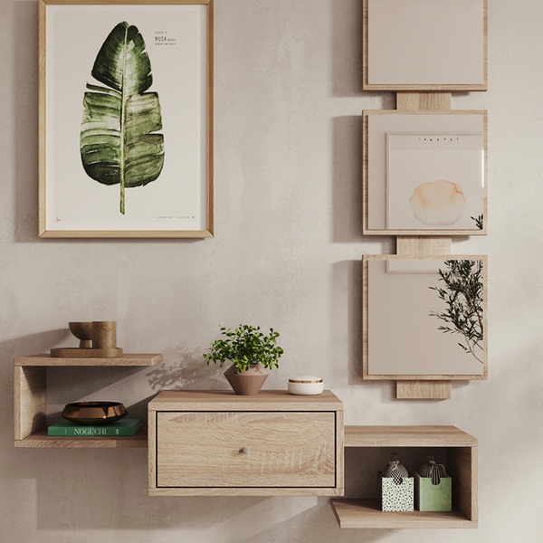 Ce meuble d'entrée apporte une touche naturelle à tout intérieur tout en offrant un espace de rangement pratique.
