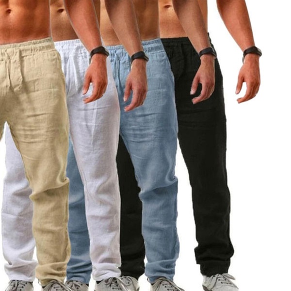 Pantalon en coton et lin, style décontracté, coloris au choix