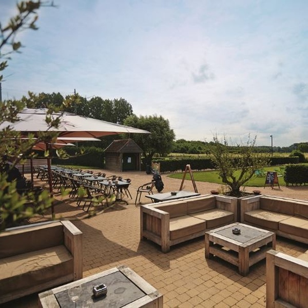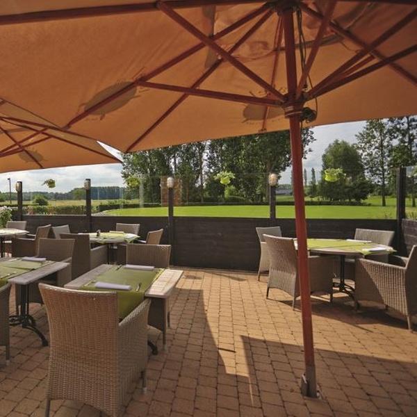 Binnen zit u rustig in het mooie interieur, maar profiteer bij mooi weer zeker ook van het grote terras, gelegen in het groen. Het terras biedt u zonder twijfel het mooiste uitzicht van heel Antwerpen op het golfterrein van Golfclub Drie Eycken.