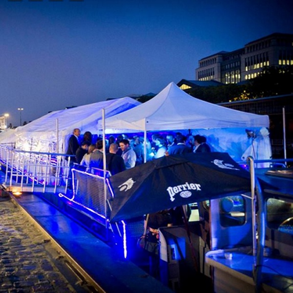 La péniche peut accueillir entre 10 et 150 personnes. Le matériel sono et lumière ainsi que le frigo et les verres sont compris dans la location.