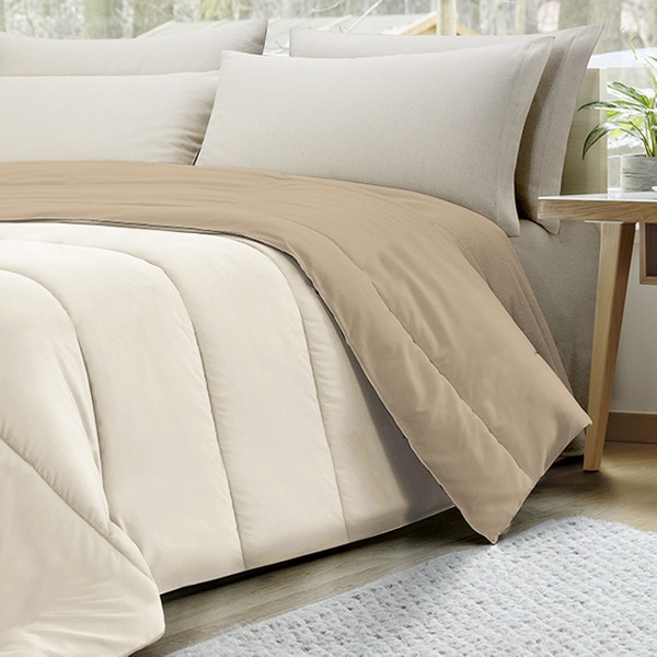 Couture italienne raffinée, cette couette bicolore allie confort hypoallergénique et style pour des nuits paisibles et élégantes.