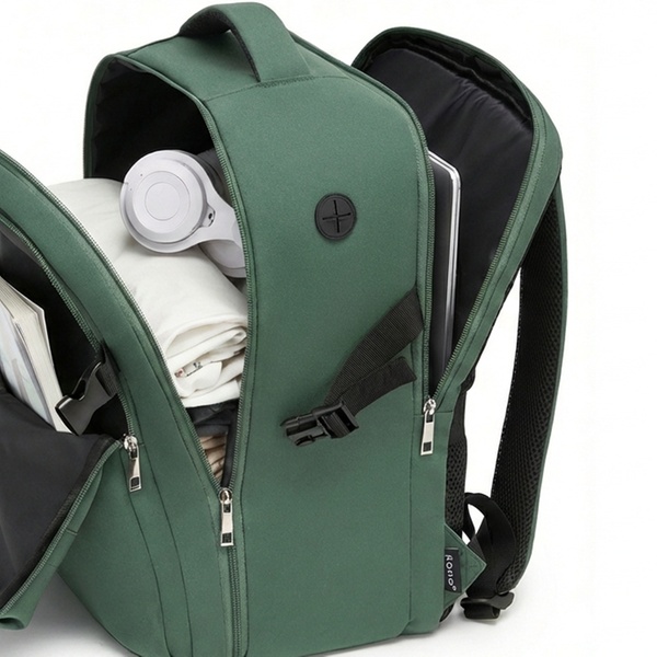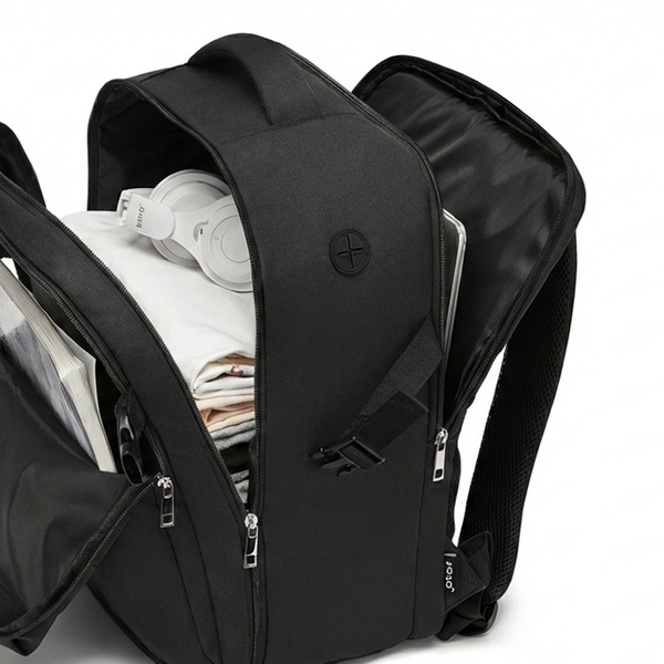 • Poche zippée en filet, porte-stylos et poche pour batterie externe