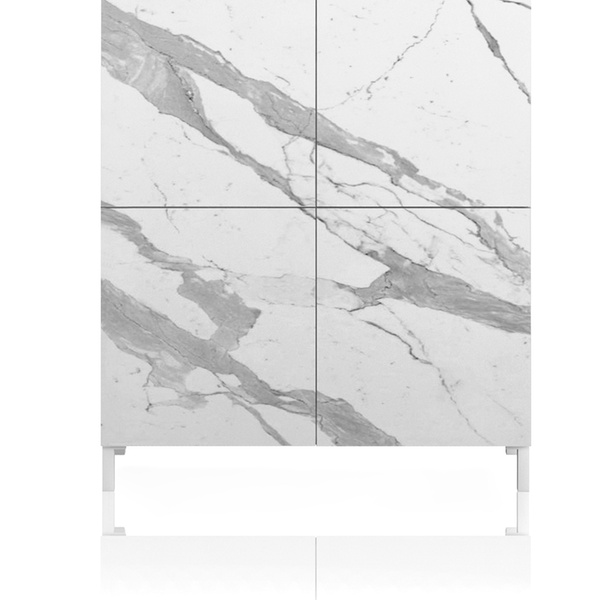 Ce meuble recouvert de marbre est un ajout élégant au salon et est disponible en blanc ou en noir