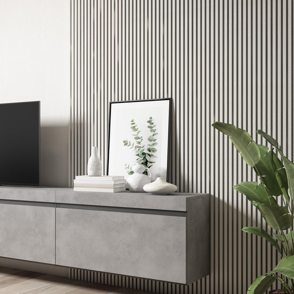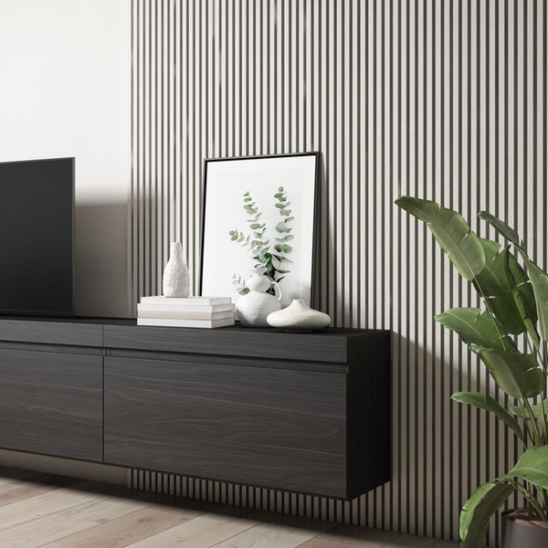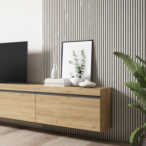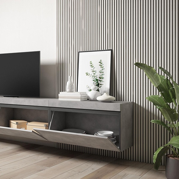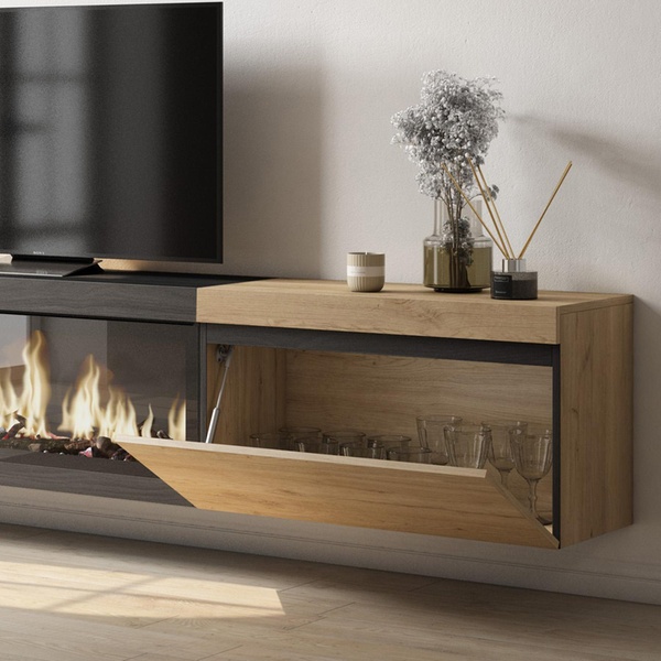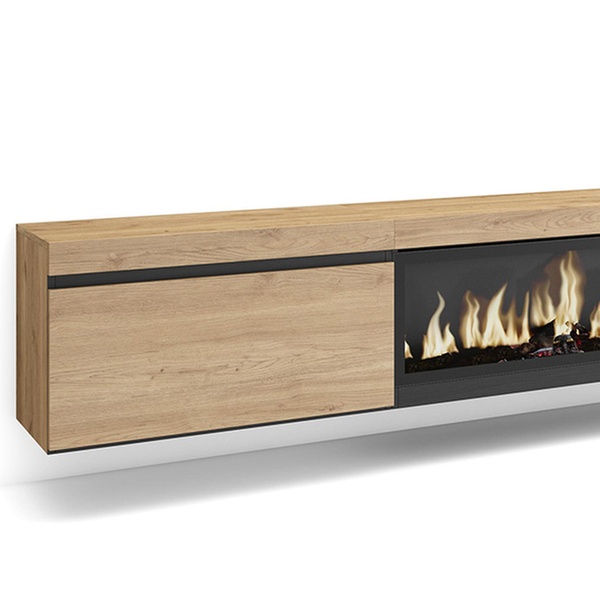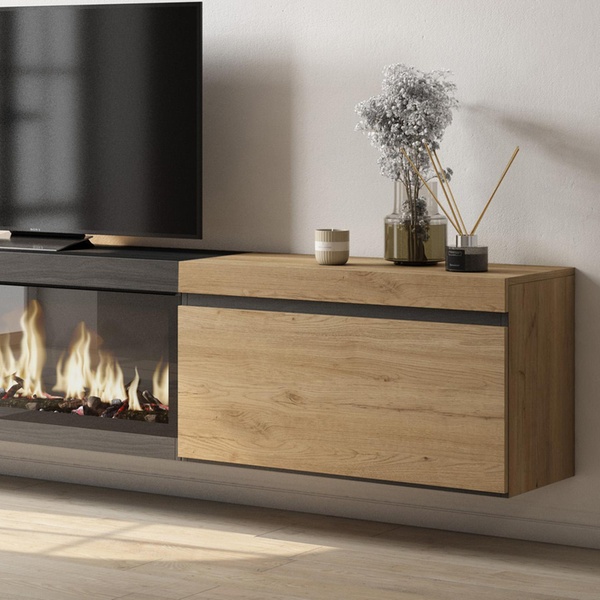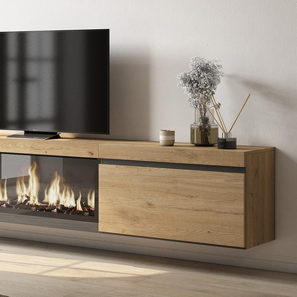 Meuble TV suspendu avec option cheminée, coloris au choix, livraison offerte