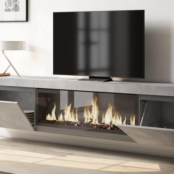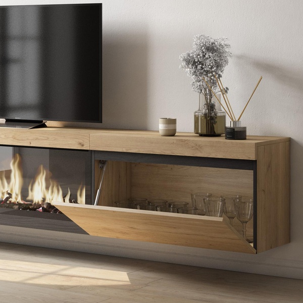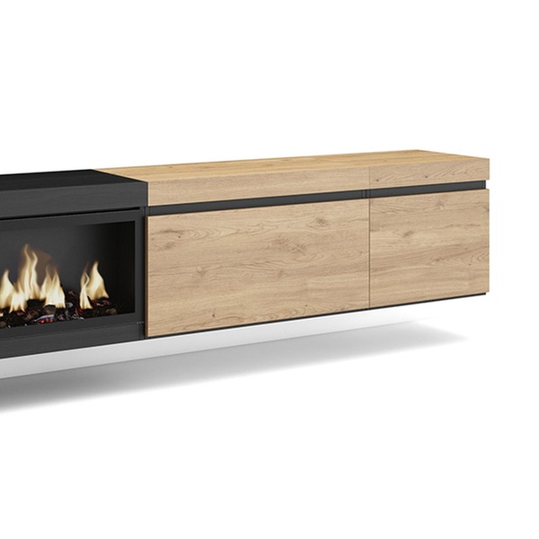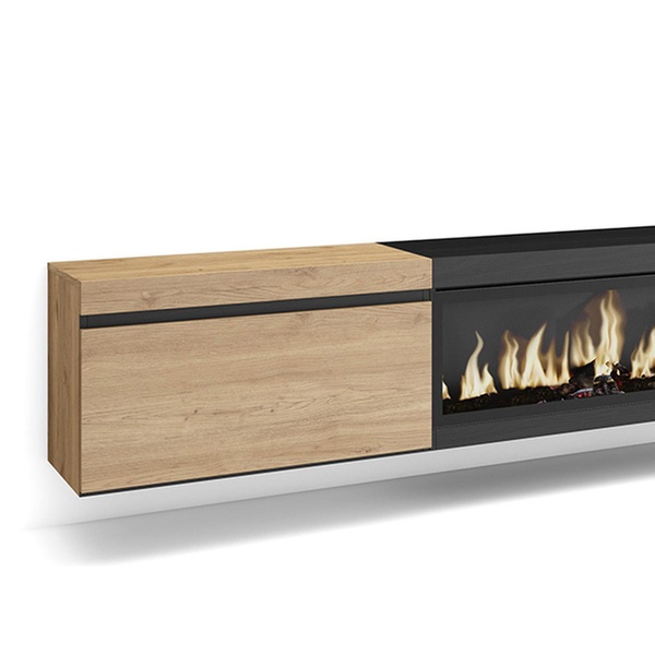 Ce meuble TV intègre une cheminée électrique LED (en option) avec un effet 3D réaliste, ajoutant une touche chaleureuse à n'importe quel espace.