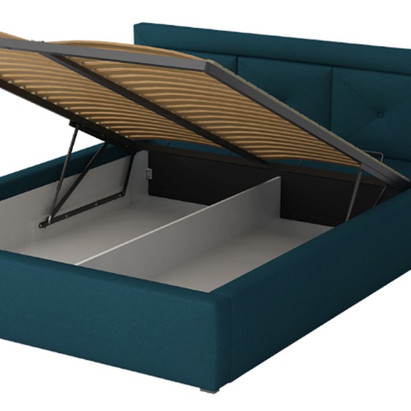 - Lit rembourré avec lattes relevables pour l’espace de rangement