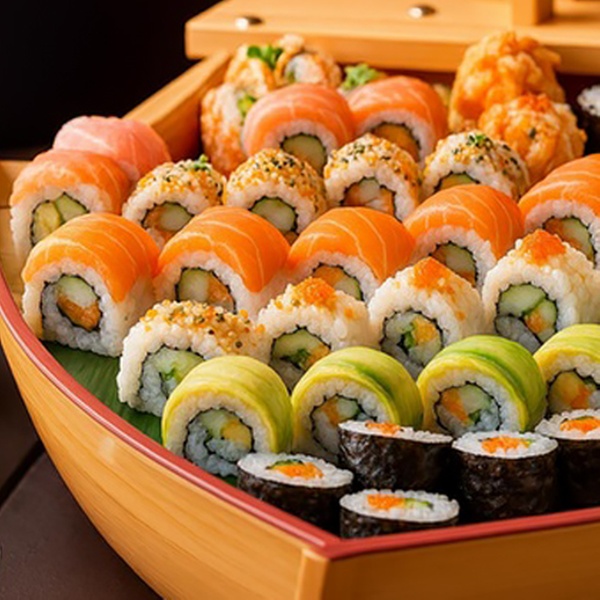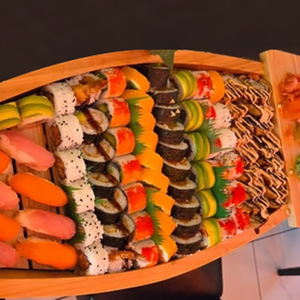 Proef een zorgvuldig samengesteld 2-gangendiner met miso soep en een heeel uitgebreide sushi boot van 42 of 66 stuks