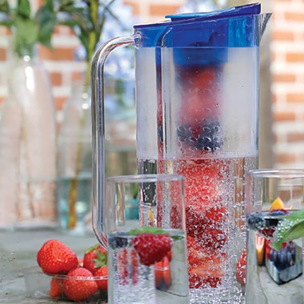 Ces carafes avec infuseur de fruits, disponibles en 2 modèles, permettent de savourer des boissons infusées maison entièrement naturelles