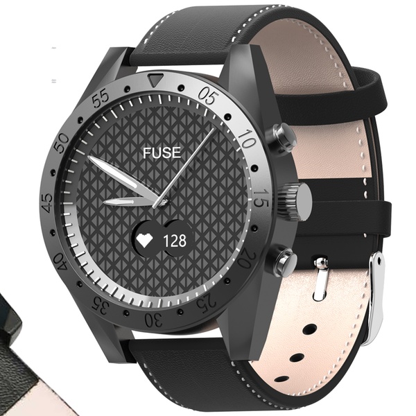 Montre connectée hybride à aiguilles digitale Bluetooth avec fréquence cardiaque et pression artérielle, bracelet en cuir
