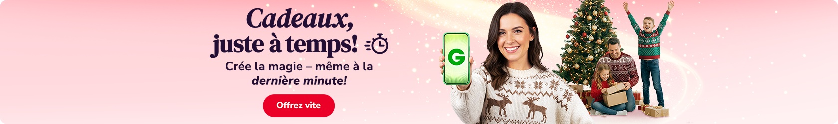 En retard pour vos cadeaux de Noël ? Pas de panique — Groupon vous couvre. Découvrez des cadeaux numériques livrés instantanément, qui paraissent réfléchis et parfaitement planifiés, même si vous achetez à la dernière minute.